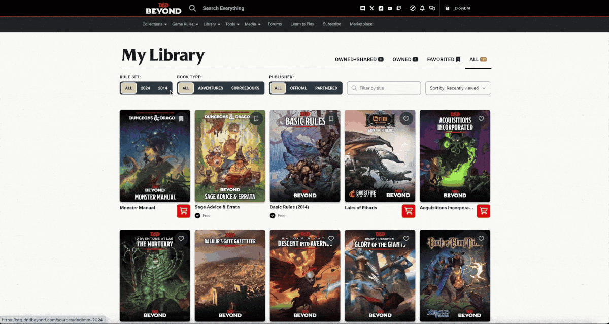 - Publisher: View content from all publishers, Official D&D releases, or partnered publishers.