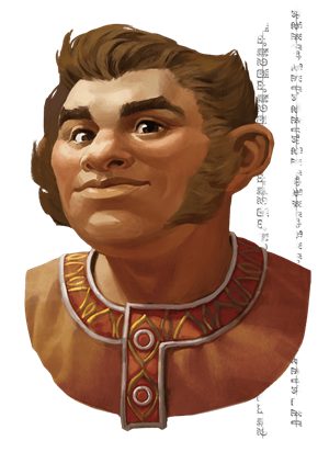 Upon hearing that his parents were killed by giants, Miros flies into a brief, but fearful rage, smashing a few plates and mugs, before slumping down and sobbing. It takes him awhile to regain his composure. The halfling, who has introduced himself as Oren Yogilby, remains by his side, doing his best to console his large furry-faced friend.