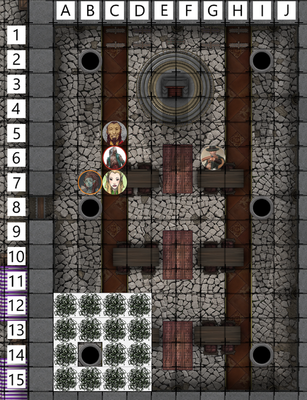 Kneeling under the table, Elyria continues to stab at the zombies leg with her thin elven blade. Dagger: 27 Piercing: 5 She then swiflty hides again under the table. Stealth: 24