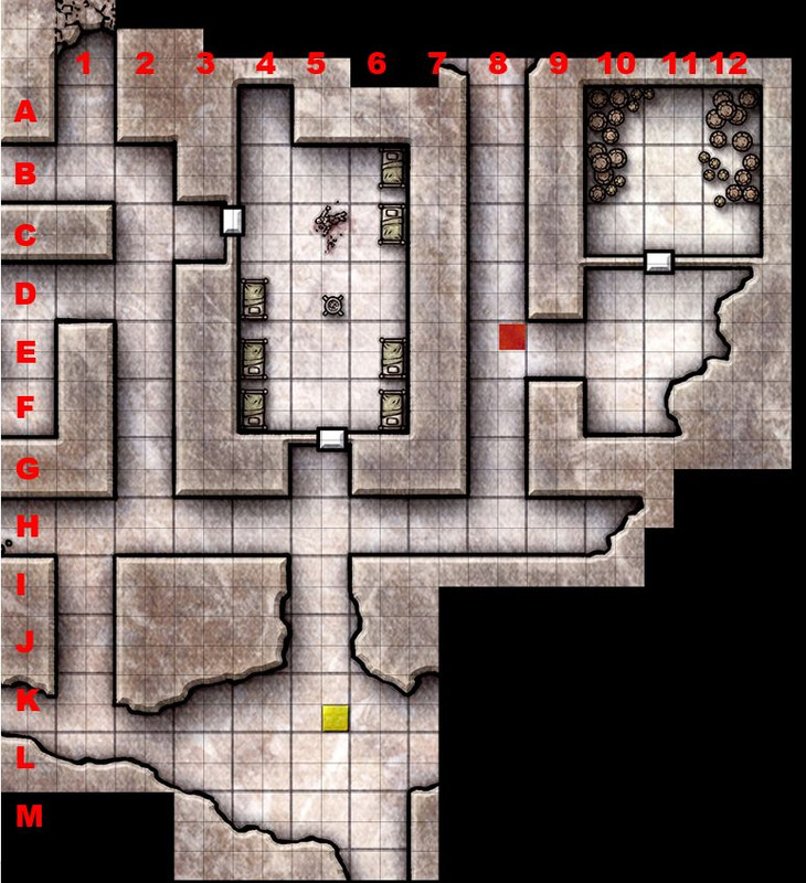 Lantern light floods the hallway as Thulgrim and Tochi charge toward the storeroom. The ground begins to shift, Finna concentrating as the stone ripples and bends, creating a wave-like area at the end of the hallway. Nemean has only just thrown his caltrops into the hallway when the first ghoul appears, followed closely by another half dozen, rushing madly down the hall.