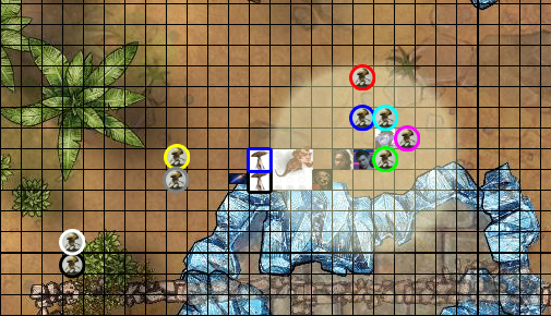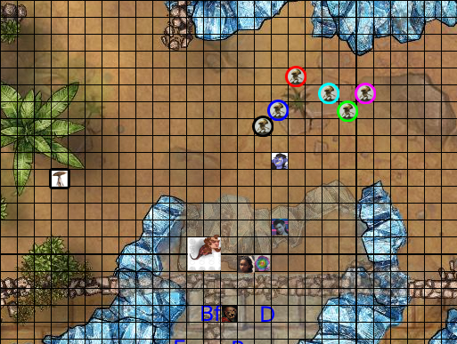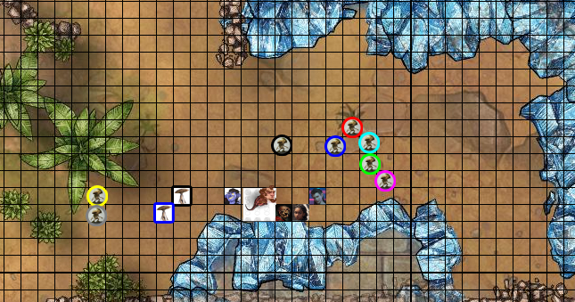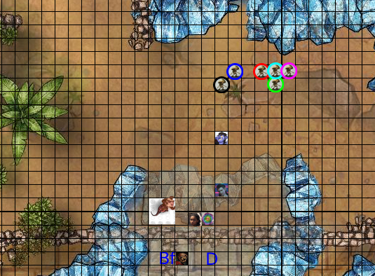 Myconid Blue and Black move out of Hastos's attack range. MrUncleTio, you get an Attack of Opportunity. Sera's Spiritual Weapon gets an Attack of Opportunity.