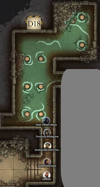 Taking the lead once more, Bees continues to follow the wider passageway. Shortsword at the ready, the gruff halfling returns Threnody's nod and steps into the darkness to the east.
