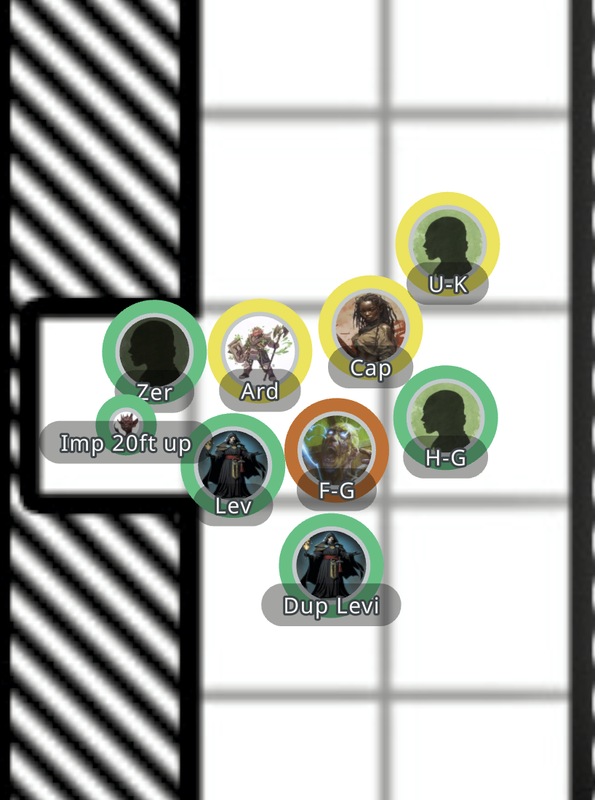 F-G Injured and has disadv on attack until after it's turn. Forgot about the disadv so rolled twice on Levi F-G didn't like the fire. (26, 20 so Levi shields the 20) AC now 23. Second attack misses now.