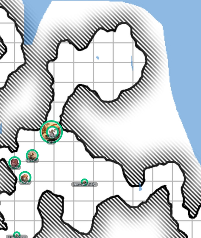 Arden stops the group and points to the south where the cavern narrows a bit Ollie telepathically chirping at Cleggor that it spotted danger. Both Arden and Ollie indicate piercers on the ceiling that direction.