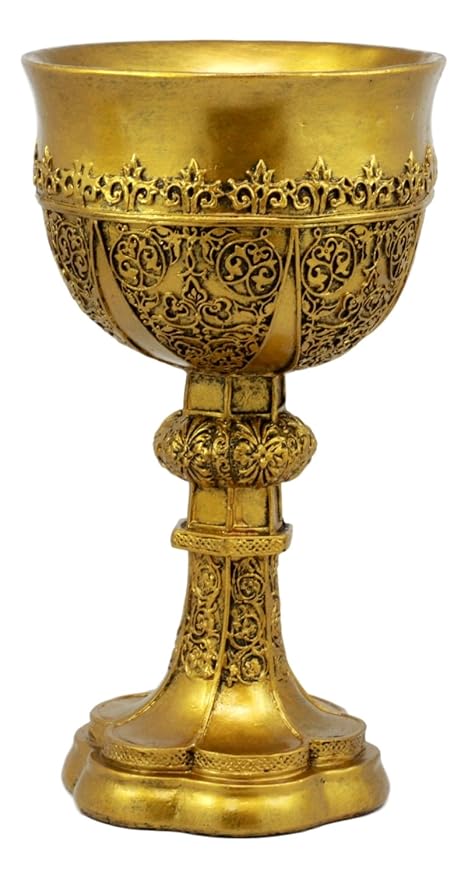 Both buildings seem to have been hastily abandoned. There are some items within, which have succumbed to the passage of time. However, within the chapel, you find a chalice, which seems to be made of gold. It looks like this: