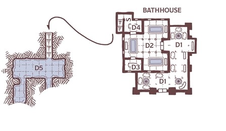 The room ( D5 ) are flooded with murky water to a depth of 2 feet to make them difficult terrain. The water seeps into the dungeon from nearby sewers through cracks in the limestone. It carries a foul stench and is undrinkable.