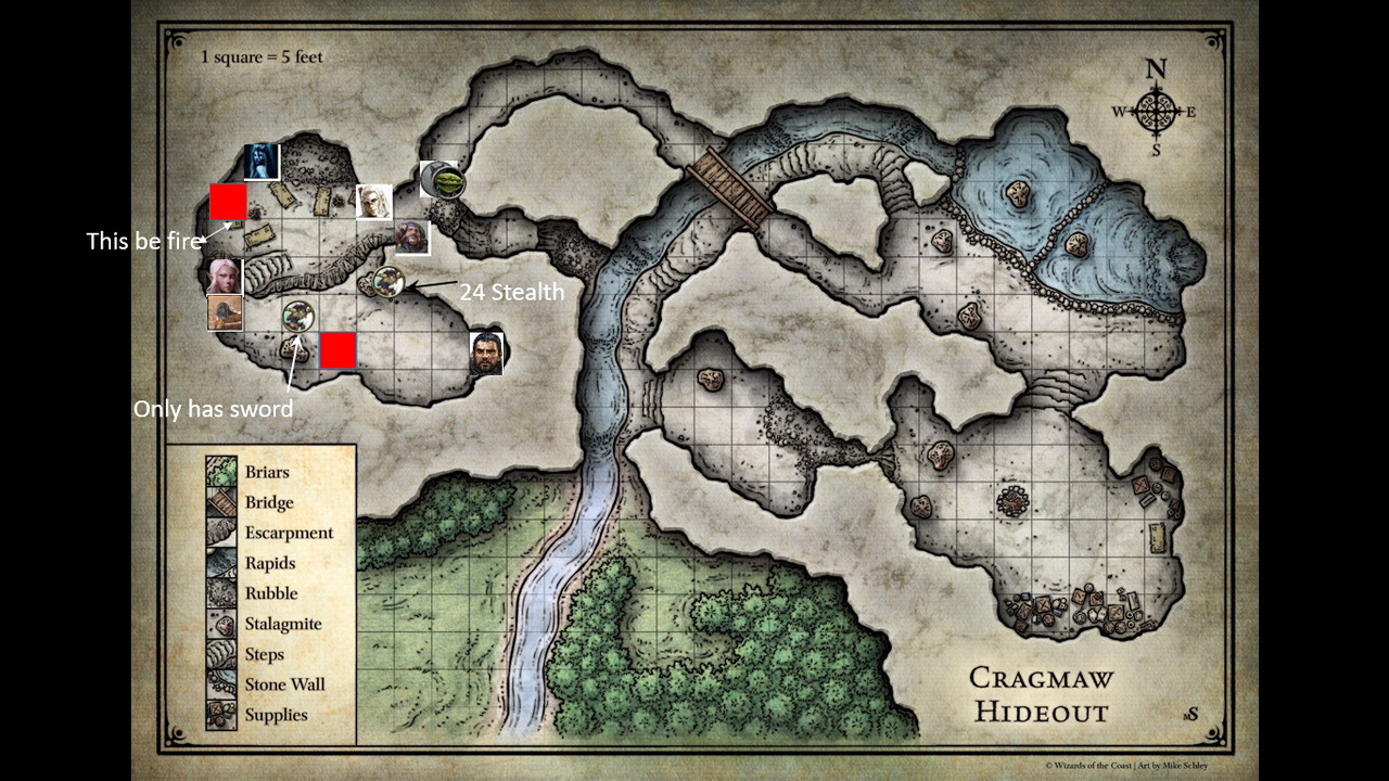 Unable to make it up the stairs after your companions you make your way over to the north wall of the cave and see the unarmed goblin that’s attempting to get away. As you direct another bonfire towards the unsuspecting goblin you are pleased to see that yet again these miserable creatures seem to be unable to avoid your attacks.