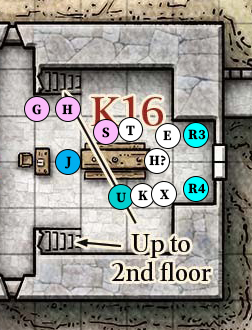 T'chal'fronack'zcinicker slips out of sight, desperately looking for high ground and to separate himself from the servers. He manages to move up to the balcony behind.