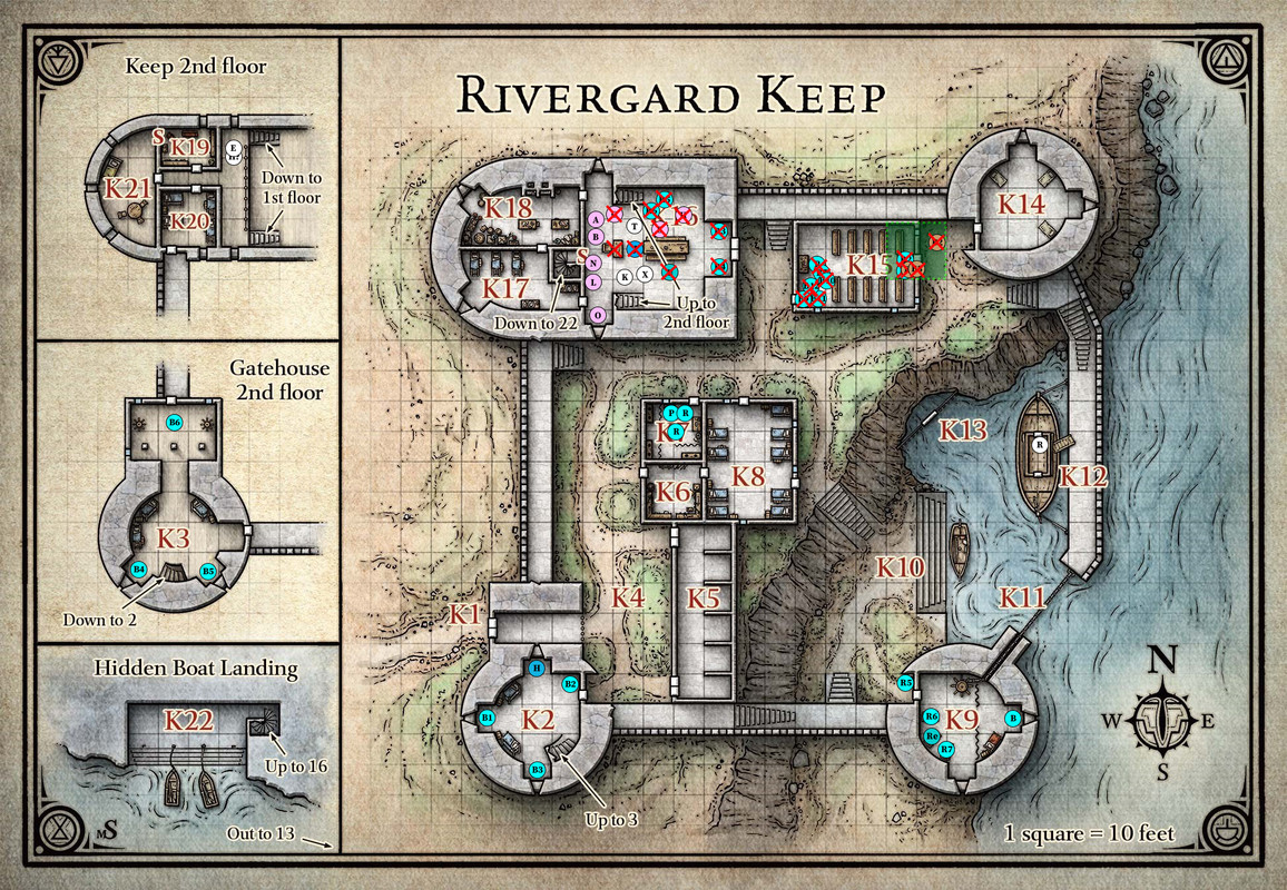 Nodding with satisfaction as the stealthy and perceptive ones among them move through the rest of the northwest keep's upper floor rooms, he adds, "Once we have caught our breath and finished searching here, we will work our way through the rest of the keep. Then we can come back by here and ensure you are safely away." Turning to T'chal'fronack'zcinicker, Kerric says, "Captain, do you want to move down to the hidden landing first and make sure it is clear before we deal with the rest of the cultists?"
