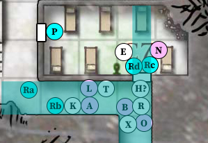 Initiative H | K | E | Rc | Rd | Rb | T | R | P | X | Ra (Spell Active: Sleet Storm - No saves required at end of turn, only the start. Kerric and Lathna carry those rolls over for the start of their next turn.)