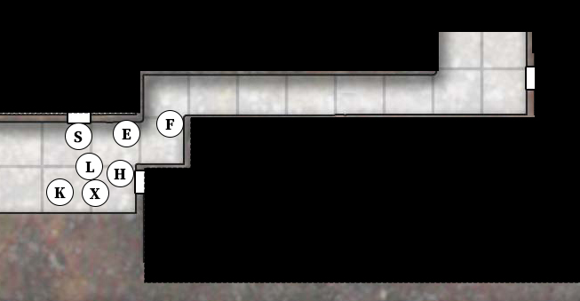 Herse silently moves into the hall but stays towards the back guarding the rear of the group