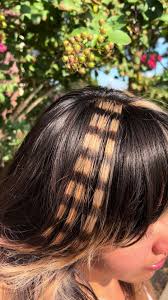 Basically, you take a couple strands of hair and wrap a hair friendly tape or wrap around it in little segments, then bleach the parts you didnt wrap, dye them the color you want, and boom it looks like a racoon tail.