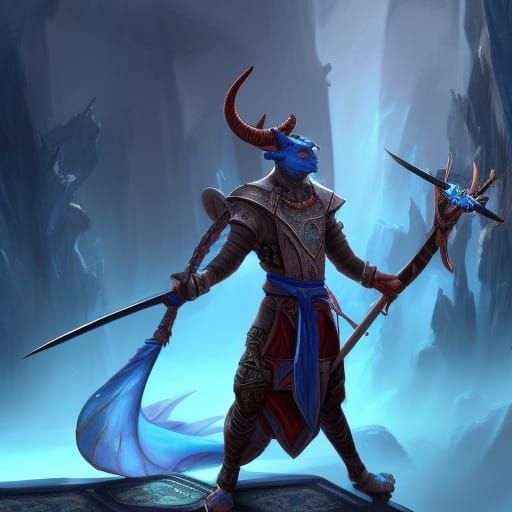 Quote from DrakenBrine >> Quote from Yondor_The_Fantastic >> Quote from DrakenBrine >> Quote from Yondor_The_Fantastic >> Quote from DrakenBrine >> Quote from Yondor_The_Fantastic >> Quote from DrakenBrine >> Quote from Yondor_The_Fantastic >> That's super cool Did you see the other ones I posted? Ya, those were sweet too Tell me what you want to make and I’ll try to do it. Purple plasmoid holding daggers?? That I can not do. It either ends up looking like a statue holding two swords or a crystal celestial. Mk... how about a tiefling with a blue-bladed shortsword? Sorry if these are hard It’s fine. It actually taught me that the AI I’m using knows what a Tiefling is. Which do you prefer;or