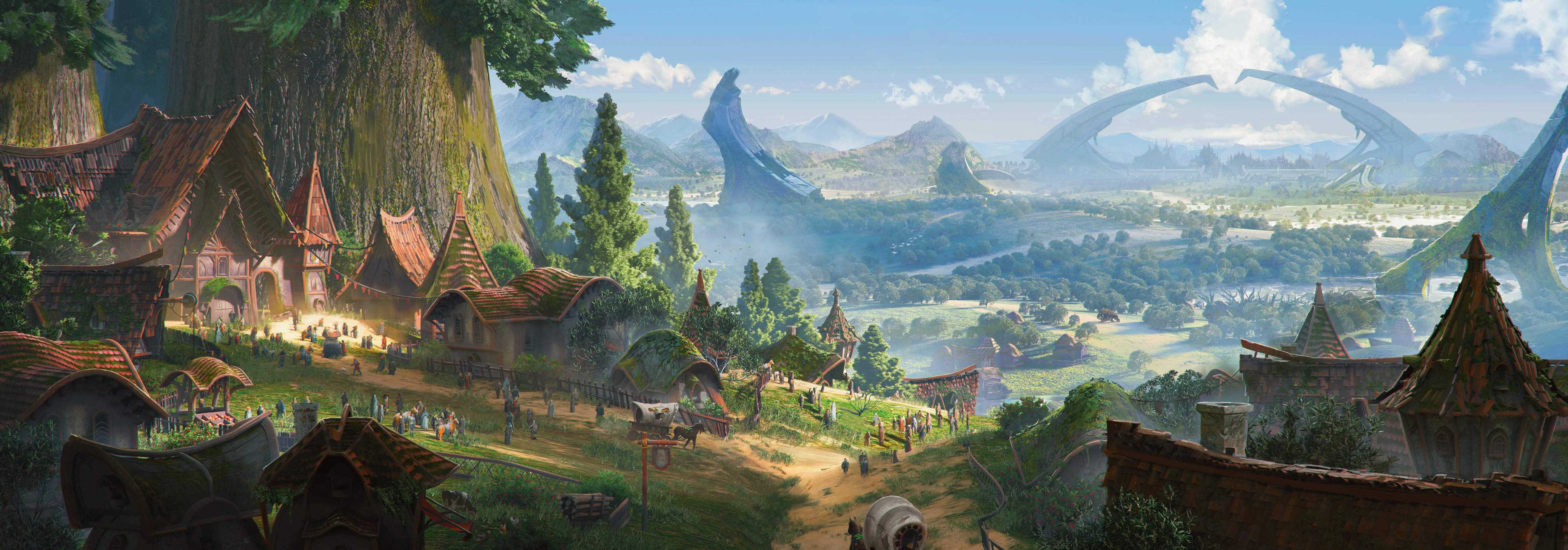 The result is a breathtaking panorama where a pastoral village fades into the looming ruins of Myth Drannor. “It makes you feel like you’re a very small person in a very huge world,” he explains. “Everything beyond is a little bit intimidating. The trees twist and curl, and in the distance, huge ruins of ancient Elvish architecture rise above the horizon.”